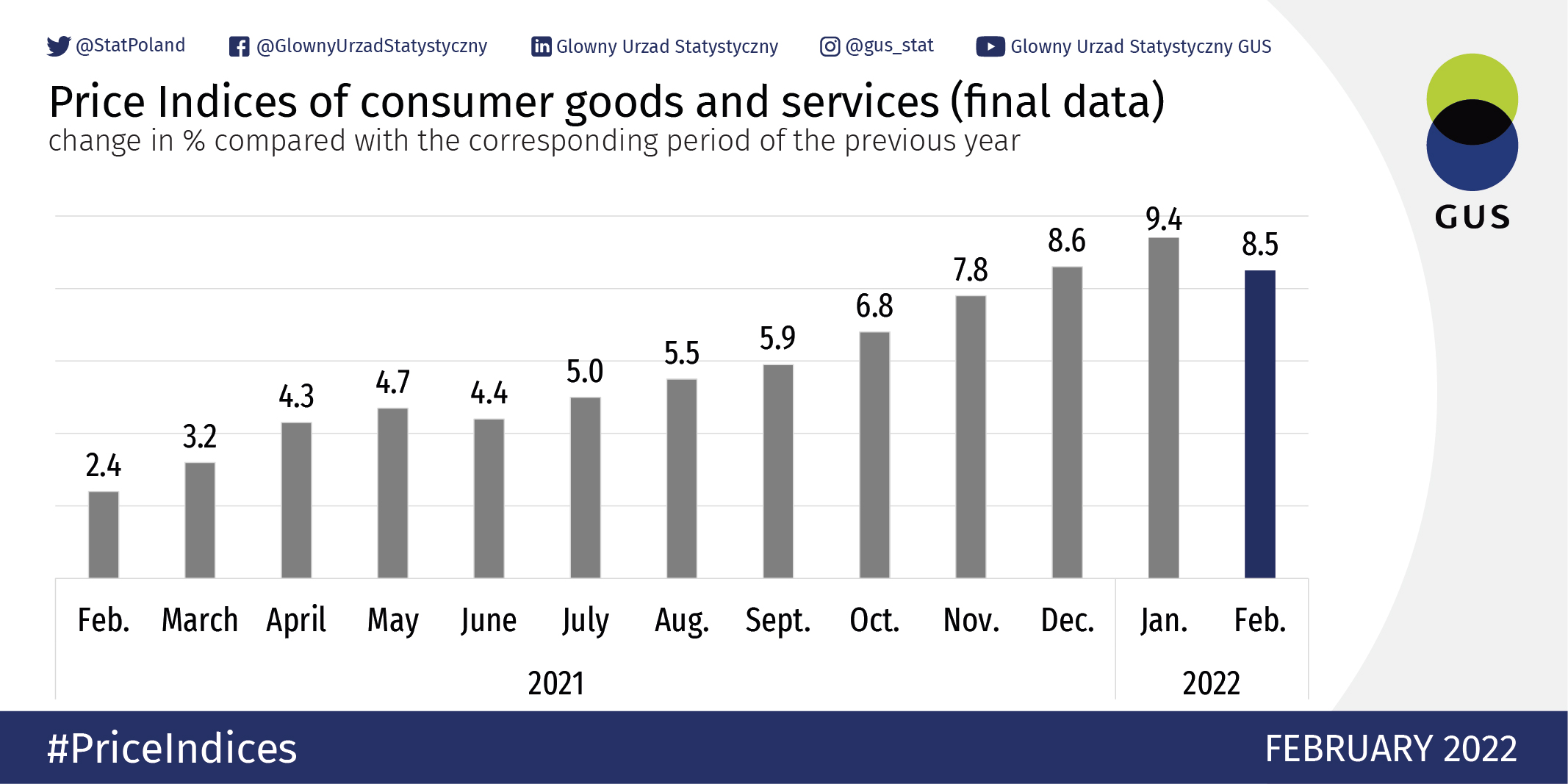 PDF February 2022 The year-on-year inflation rate as measured by the CPI was 15.7 percent in February 2022 (Figure 1). This rate of inflation for February 2022 is the percentage change in the Consumer Price Index (CPI) over the twelve-month period, from February 2021 to February 2022. The monthly change rate from January 2022 to February 2022 is 2.4 percent.