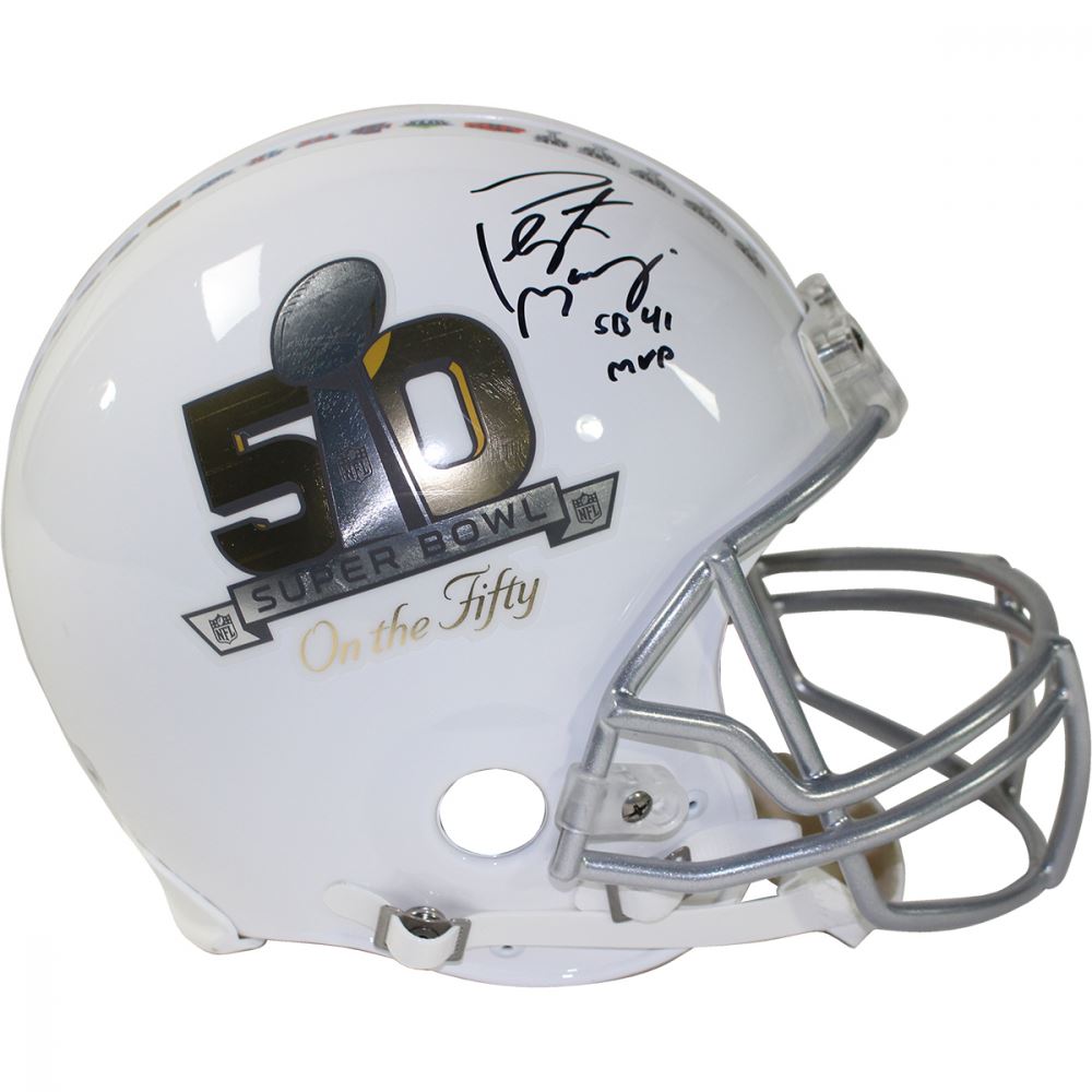 AUCTION - Peyton Manning Signed Broncos Full-Size ... Riddell Denver Broncos full-size authentic on-field speed helmet with custom visor has been hand-signed and inscribed by Peyton Manning (HOF). This Denver Broncos speed authentic custom visor helmet has been personally hand-signed by Peyton Manning with the inscription "HOF 21." It is officially licensed by the National Football League and comes with an individually numbered, tamper-evident ...