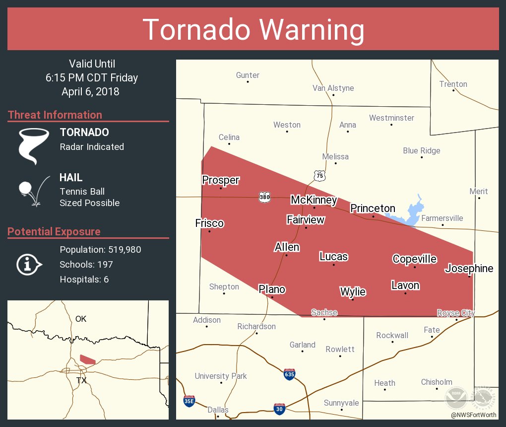 Dallas, TX Weather Advisories - Warnings & Watches ... See a list of all of the Official Weather Advisories, Warnings, and Severe Weather Alerts for Dallas, TX. WWA Summary for Tornado Watch - National Weather Service 02/06/2009 · The National Weather Service is your best source for complete weather forecast and weather related information on the web! Tornado warning issued for Angelina County | Community ... 15/03/2022 · The National Weather Service issued a tornado warning for Angelina County saying there is a severe thunderstorm capable of producing a tornado near Apple Springs. The warning is in effect until 9:15 p.m. and the service encouraged residents to take cover in an interior room in the lowest floor of a sturdy building. The report said flying debris will be … Severe Weather - Frisco, Texas Keep an eye on developing weather and stay tuned to a local radio or television station in case conditions worsen. A warning indicates a severe thunderstorm and/or tornado has been spotted or is indicated on the NWS radar. All those within the designated warning area should take cover immediately and remain there until the danger passes.