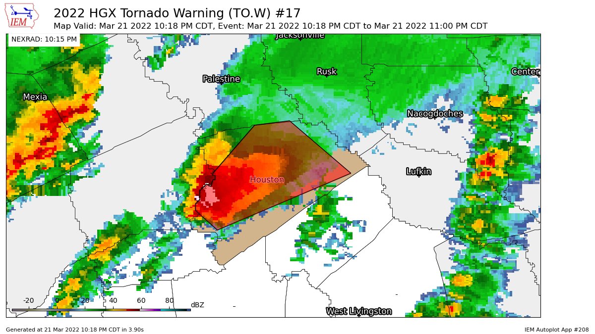 tornado hq - tornado tracker and current tornado warnings At 941 PM CDT, a severe thunderstorm capable of producing a tornado was located 10 miles west of Frankston, or 13 miles southeast of Athens, moving northeast at 50 mph. AT 939 PM CDT, A SEVERE THUNDERSTORM CAPABLE OF PRODUCING A TORNADO WAS LOCATED OVER MADISONVILLE, MOVING NORTHEAST AT 40 MPH.